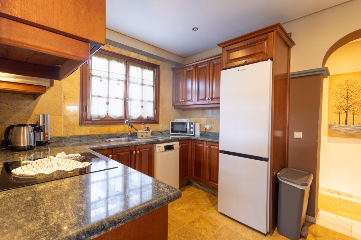 The fully equipped kitchen meets every culinary need, while the bright and welcoming living area, furnished with an elegant U-shaped sofa, is equipped with a Smart TV with IPTV, offering international channels from all over the world, perfect for relaxing after a day in the sun.